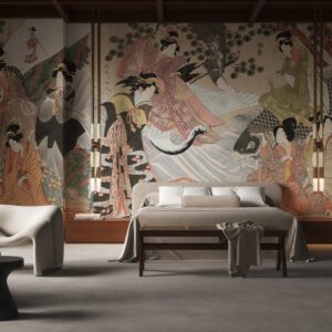 Japanese Geisha Woodblock Print Removable Wall Mural – Floral Peel Stick Temporary Decor