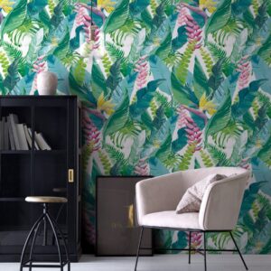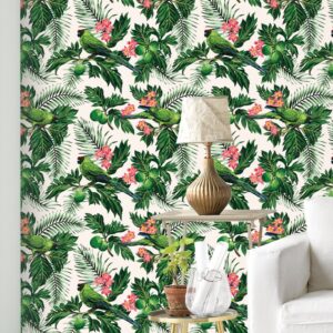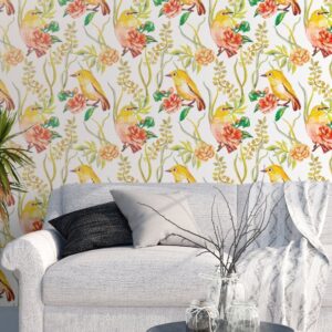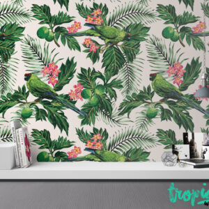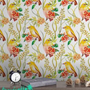 Exotic Birds Removable Wallpaper – Tropical Floral Wall Decor