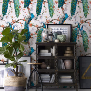 Peacock Wallpaper: Vintage Tree & Birds,