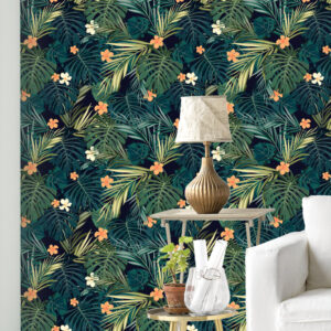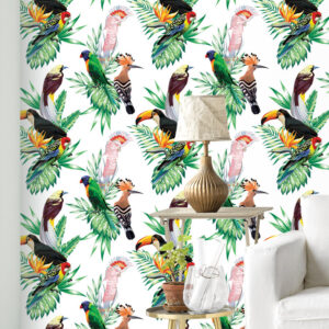 Exotic Parrot Wallpaper: Tropical Flowers, Birds, Removable Wall Decor
