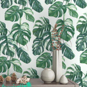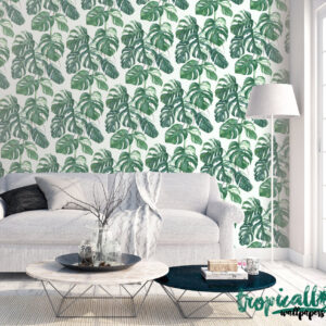 Monstera Leaf Print Wallpaper: Tropical Wall Art