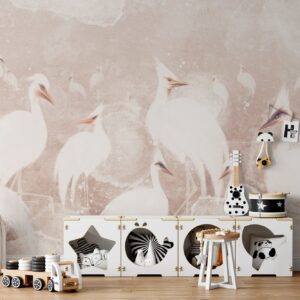 Crane Wallpaper Mural: Chinoiserie Heron,