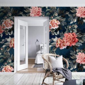 Dark Blue Floral Wallpaper Mural Dreamy Peony Design Removable Wall Decor
