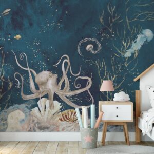 Underwater Octopus Mural: Fish Wallpaper for Ocean-Themed Room Decor