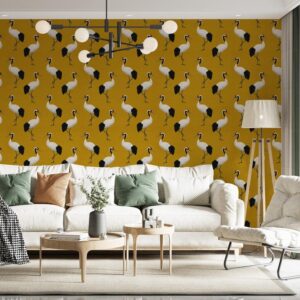 Mustard Yellow Wallpaper with Heron Pattern