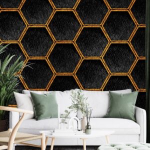 Golden Art Deco Geometric Wallpaper Black Hexagon Mural