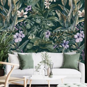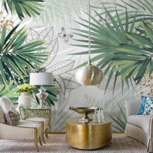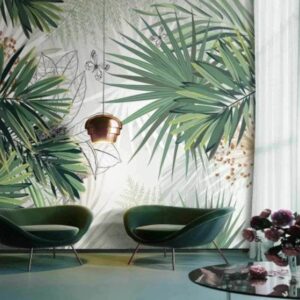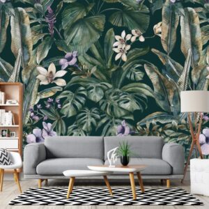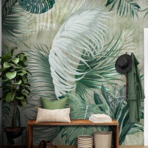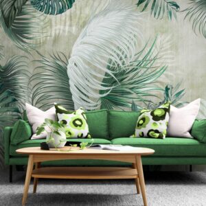 Green Tropical Leaf Wallpaper Vinyl Wall Mural