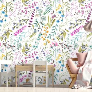 Pink Floral Wallpaper Watercolor Flower Wall Mural