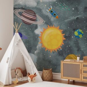 Rocket Galaxy Kids Wallpaper Mural Nursery Decor