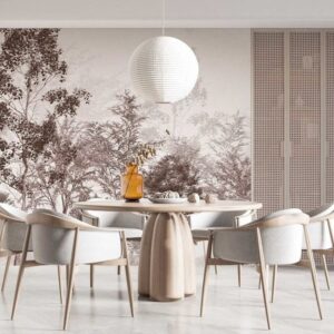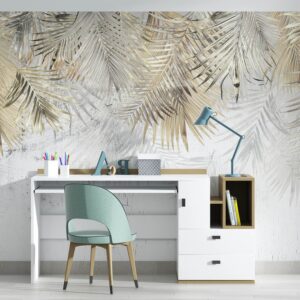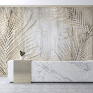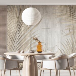 Tropical Leaves Wallpaper Mural Beige Palm Design