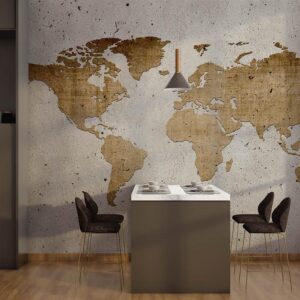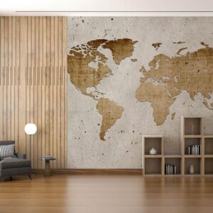 Concrete World Map Mural Vintage Style