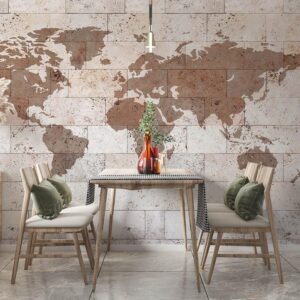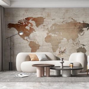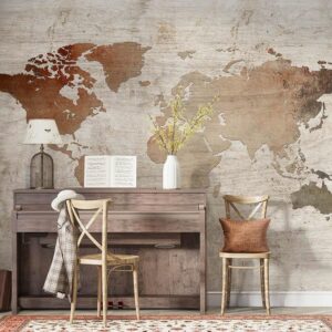 Vintage World Map Mural Wood Style