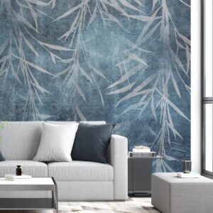 Blue Background Gray Tropical Leaves