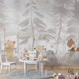 Cute Animals Bus Wallpaper Kids room wallpaper Child room mural