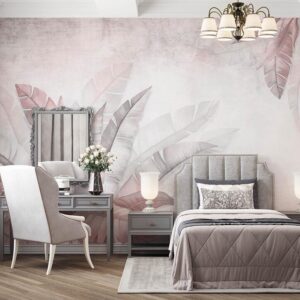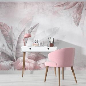 Pink Tropical Leaves Mural