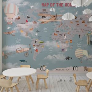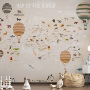 Kids World Map Mural Educational Animal Map