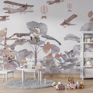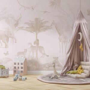 Safari Animals Wallpaper Tropical Leaves Children’s Room Decor
