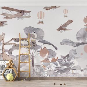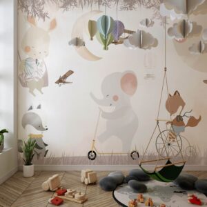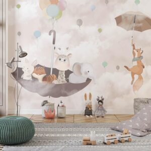 Animals in Umbrellas Wallpaper Mural Kids Room Decor