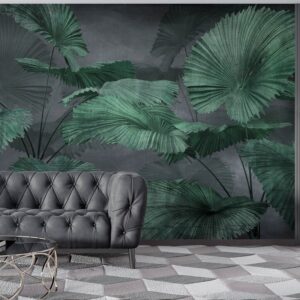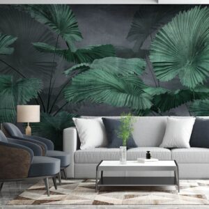 Dark Turquoise Tropical Leaves Mural Wallpaper