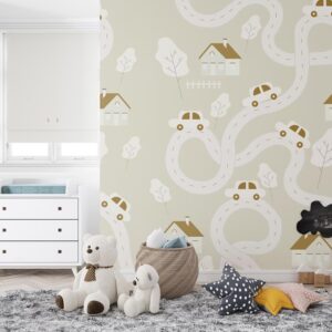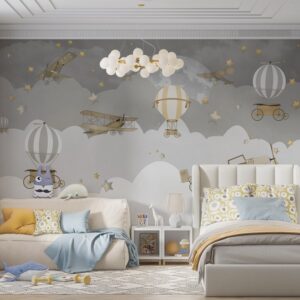 Animals on Airplane Wing Wallpaper Child Room Decor