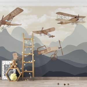 Biplanes & Balloons Kids Room Wallpaper Sky Design