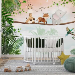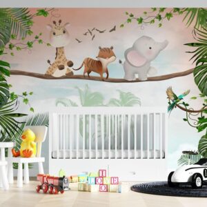 Cute Safari Animals Safari Tropical wallpaper for kids rooms design