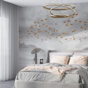 Golden Birds Wallpaper Art Vintage Gray Sky