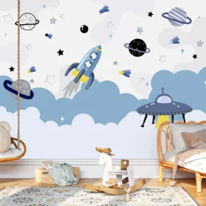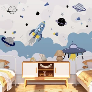 Cartoon Space Nursery Mural