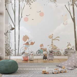 Fox riding a bike Sweet moon Child room wallpaper