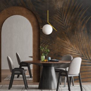 Dark Brown Tropical Leaves Mural Wallpaper