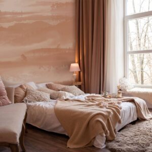 Bring warmth and elegance to your space with this stunning Peach-Toned Landscape Wall Mural, designed to create a soft and