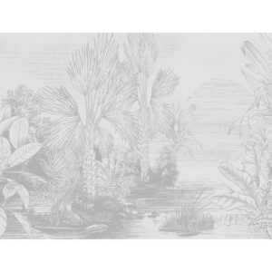 Transform your space with this elegant Gray Botanical Landscape Wall Mural, designed with delicate hand-drawn details that bring a sense