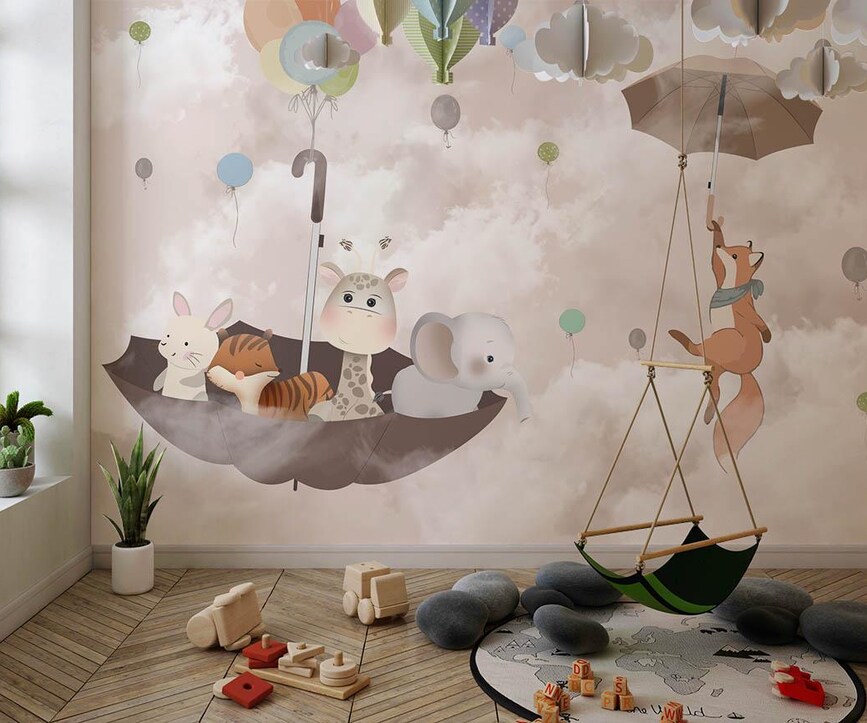 Animals in Umbrellas Wallpaper Mural Kids Room Decor