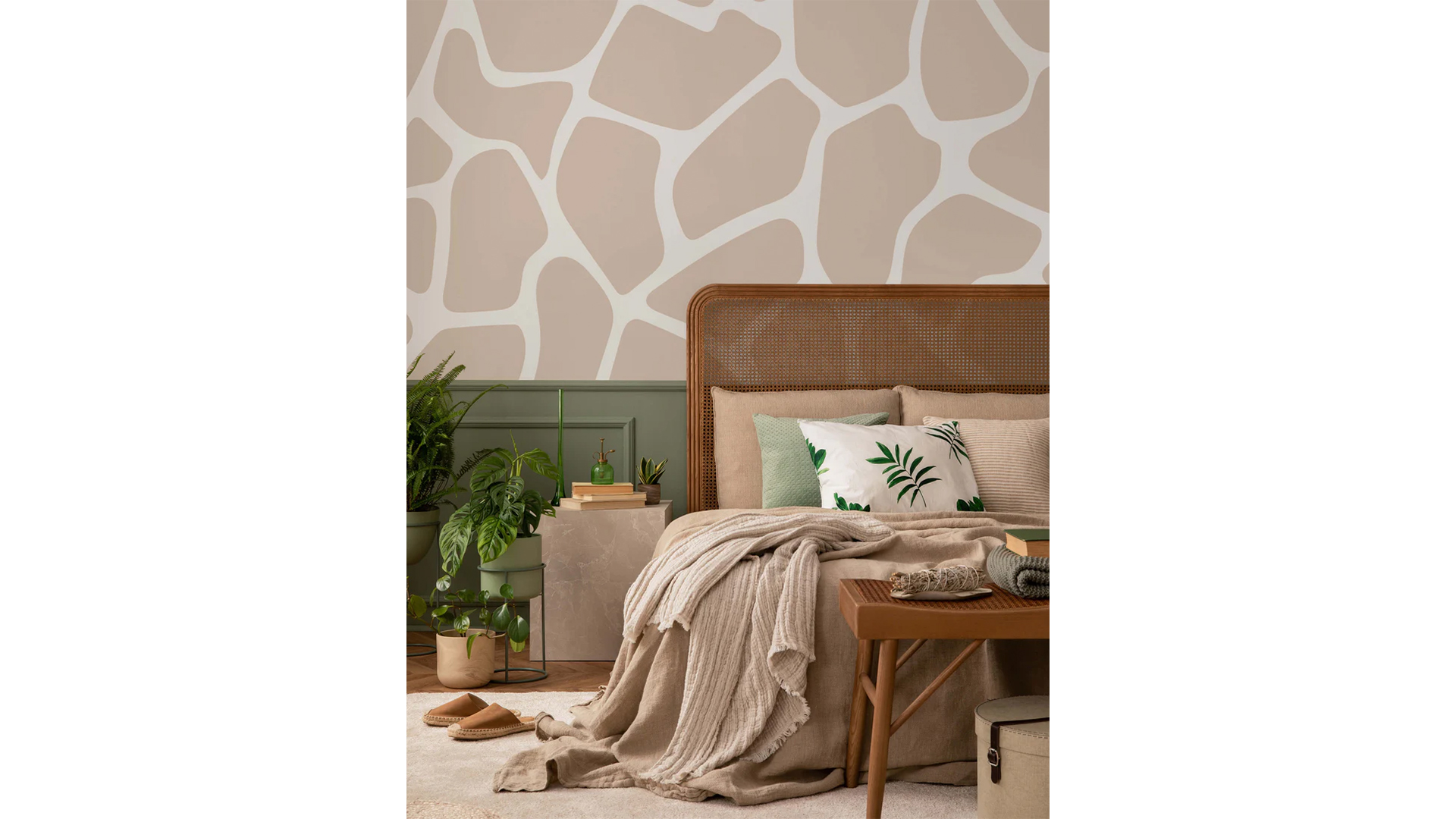 This expansive giraffe print wallpaper mural offers a delightful way to infuse your space with a sense of playfulness. Featuring large abstract shapes inspired by the distinctive patterns of giraffe skin, it is available in a variety of muted yet vibrant tones. This design strikes a harmonious balance between bold impact and subtle charm, creating a modern, unique, and whimsical aesthetic.