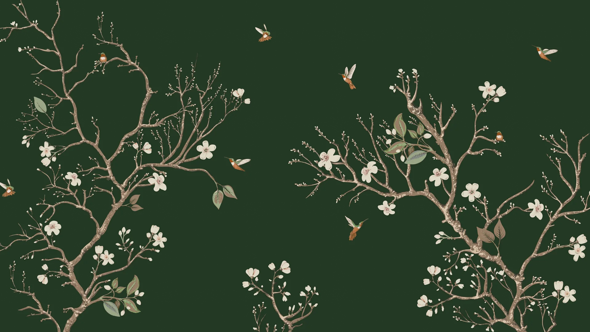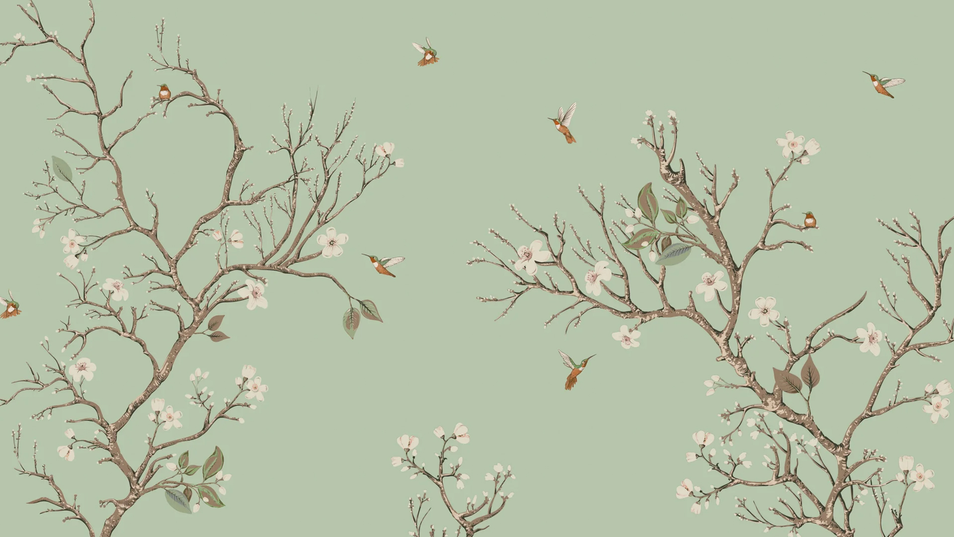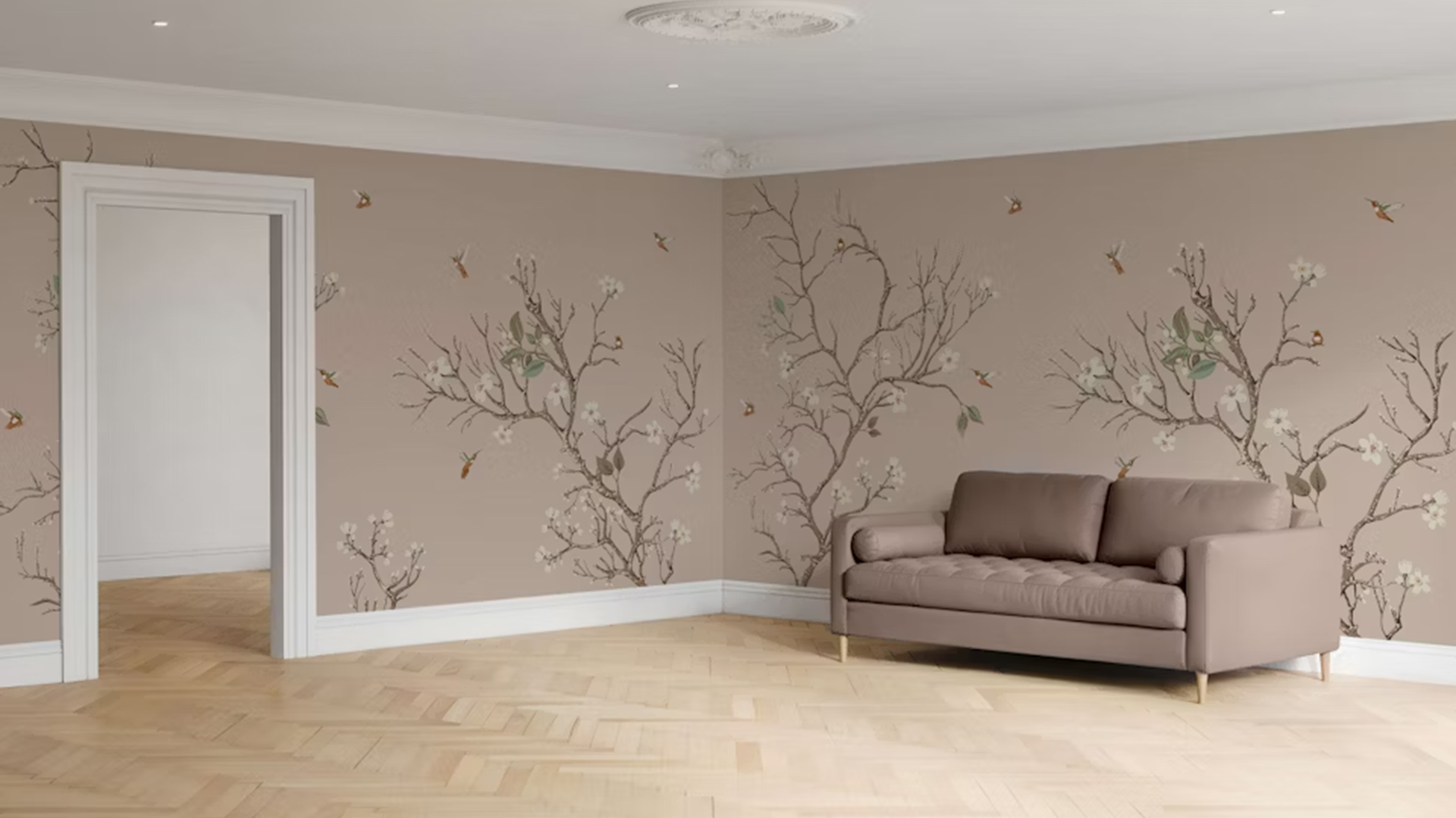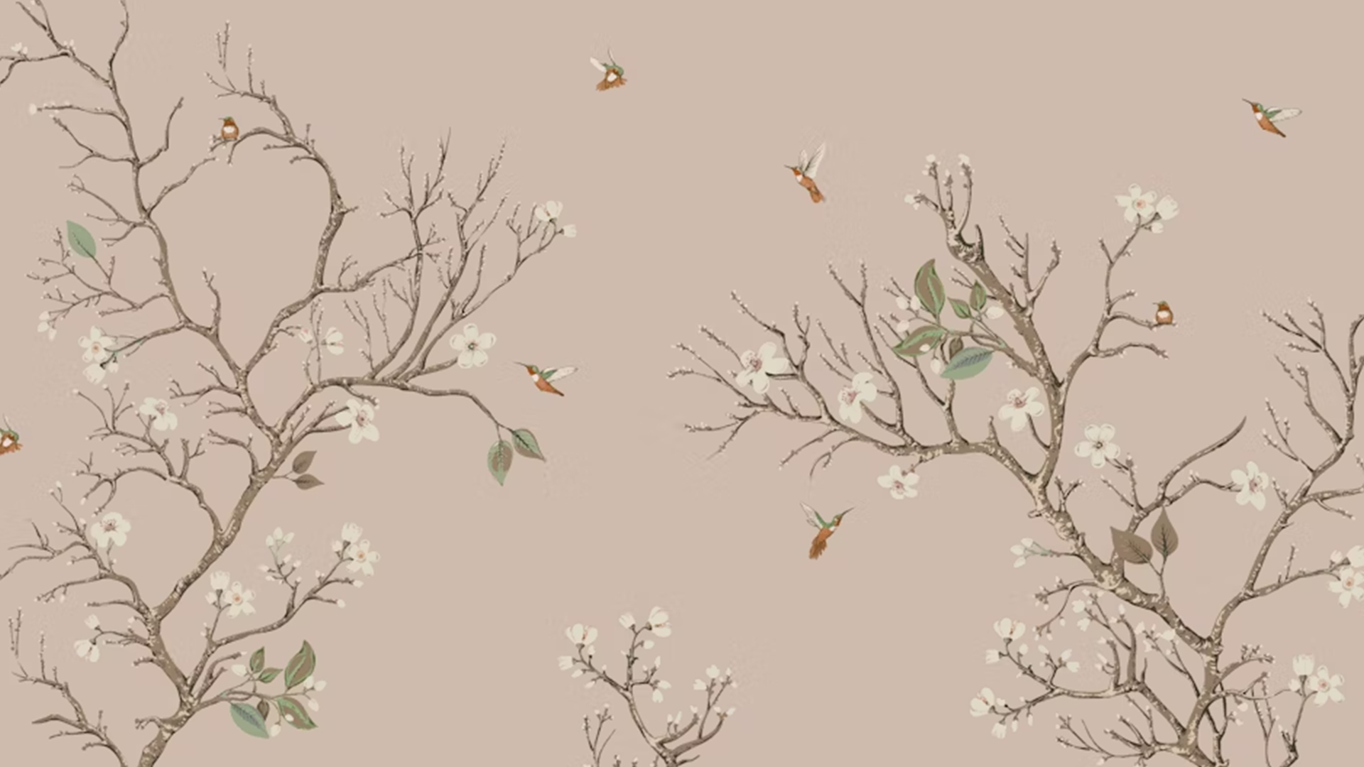 This bird and branch wallpaper mural seamlessly combines classic themes with contemporary colors, resulting in a timeless and versatile design. It complements both rustic and modern aesthetics equally well, featuring delicately illustrated trees and birds that enhance any space.