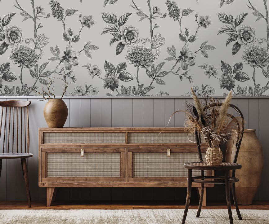 Black and White Floral Wallpaper Modern Botanical Wall Mural