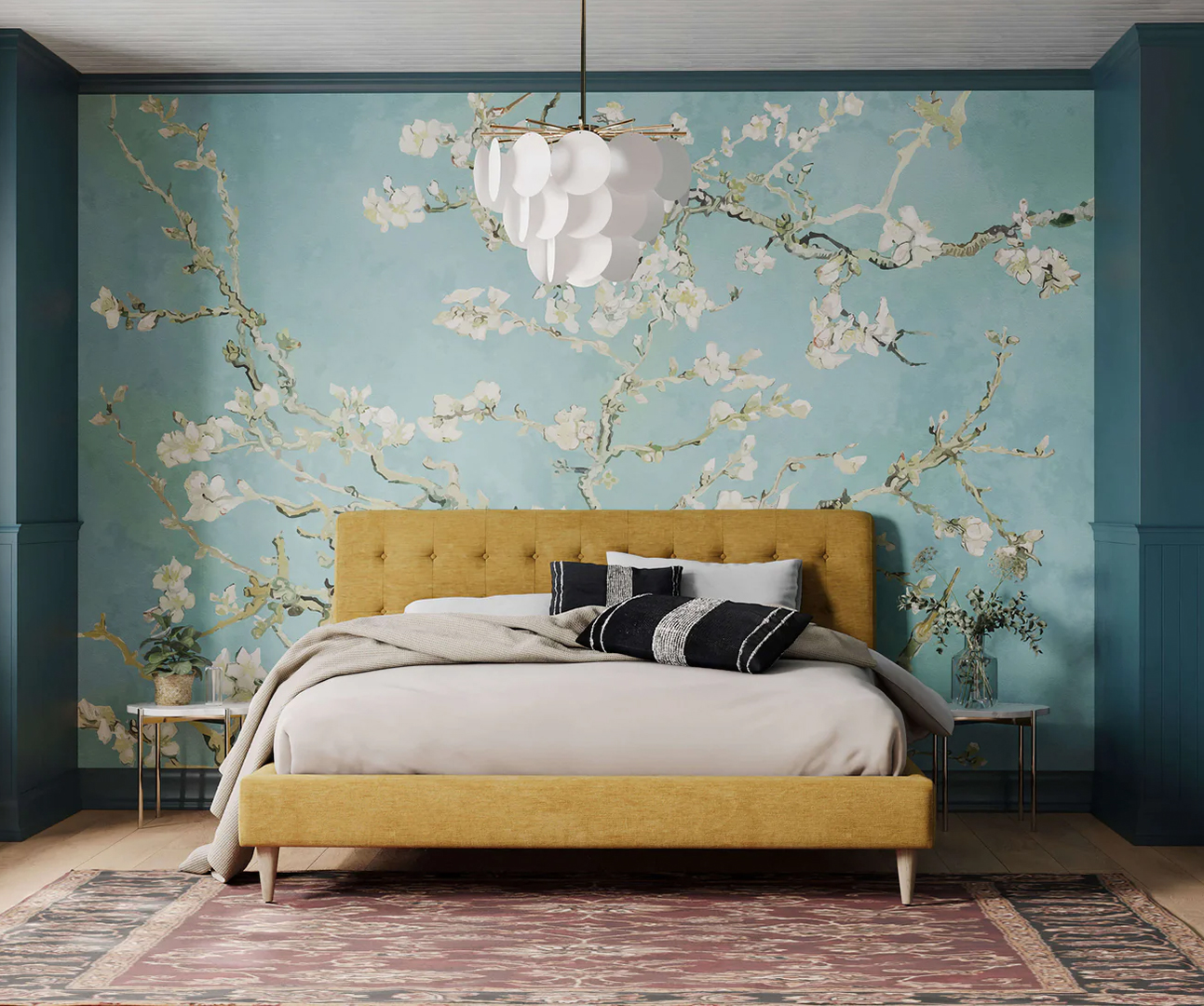 As one of the most influential and iconic artists in history, Vincent Van Gogh rightfully earns a place within our mural collection. Our large-scale interpretation of “Almond Blossom” has been meticulously remastered, transforming the centuries-old painting into a blossom wallpaper that boasts unprecedented levels of definition. With remarkable clarity, every detail is visible, even on expansive walls. This Van Gogh wallpaper mural is sure to make a striking statement in any space, and its wide-ranging appeal makes it a versatile choice suitable for various design schemes and rooms.