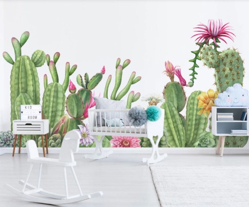 Cactus Wallpaper Mural Nursery Wall Decor