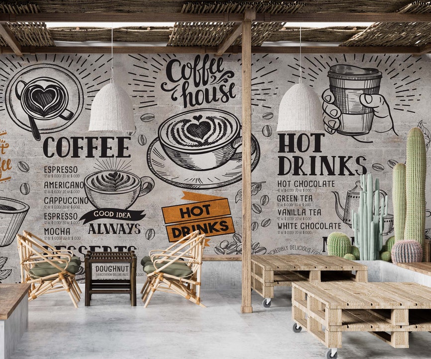 Cafe Coffee Shop Wallpaper Customizable Wall Mural