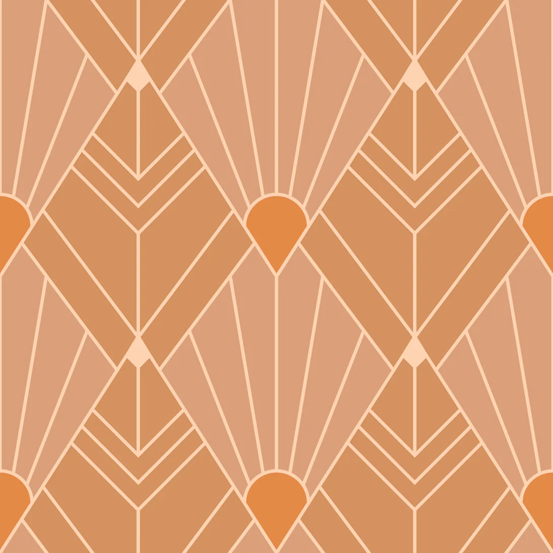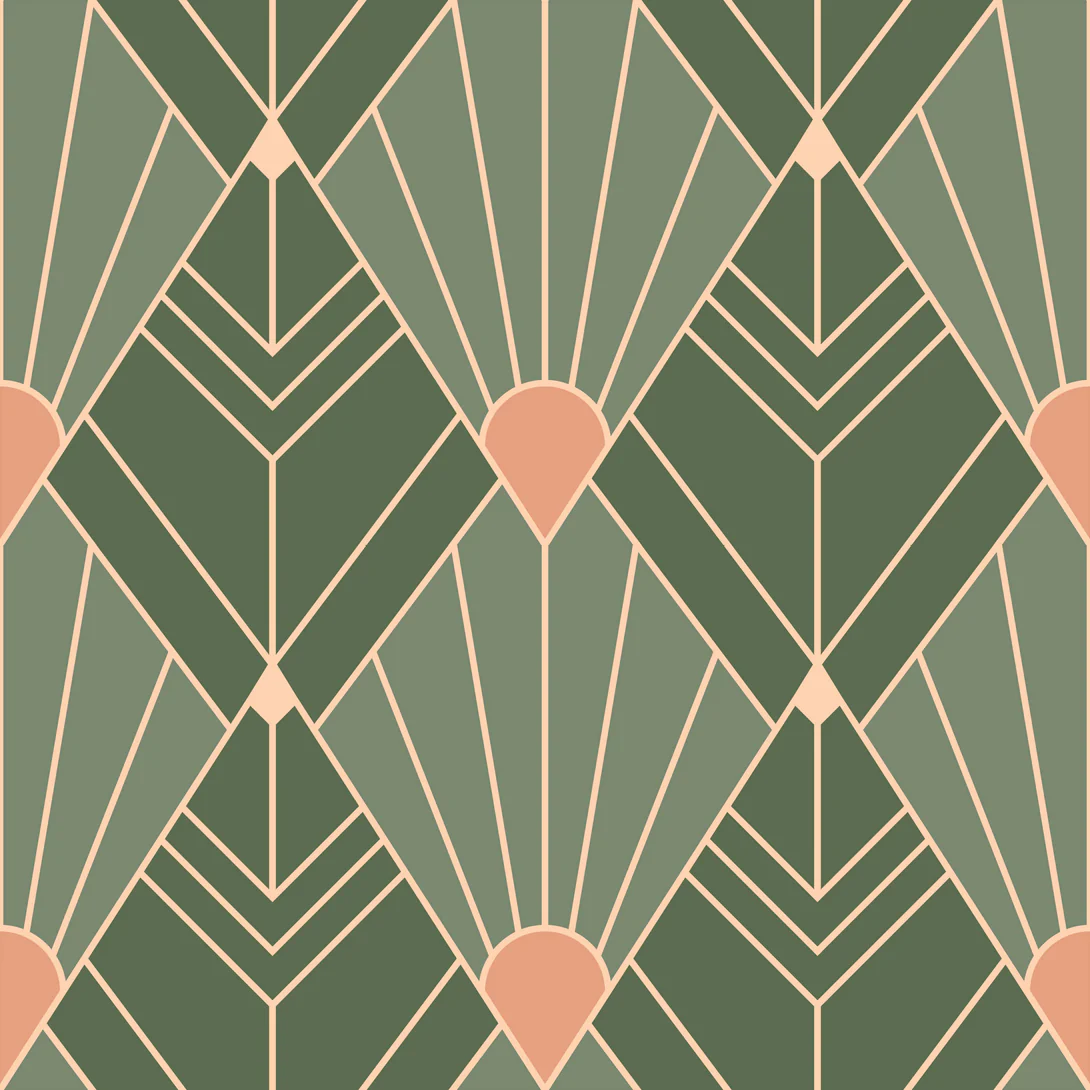 This Art Deco wallpaper, characterized by overlapping diamonds and subtle lines, will introduce a touch of modern luxury to your space. Drawing inspiration from the design aesthetic of the 1920s, its geometric forms and classic color palette create an ideal option for a striking feature wall. The design is available in three elegant hues: pink, green, and brown.