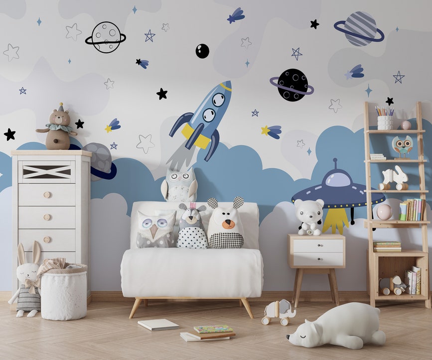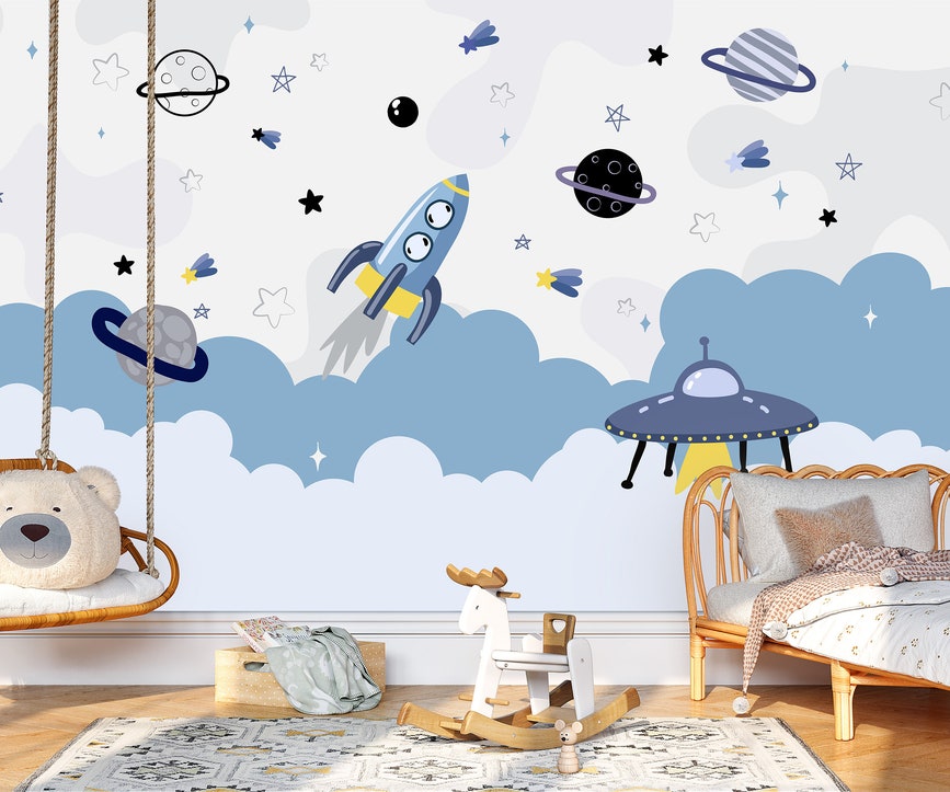 Be the first to review “Cartoon Space Nursery Mural Galaxy Wallpaper”