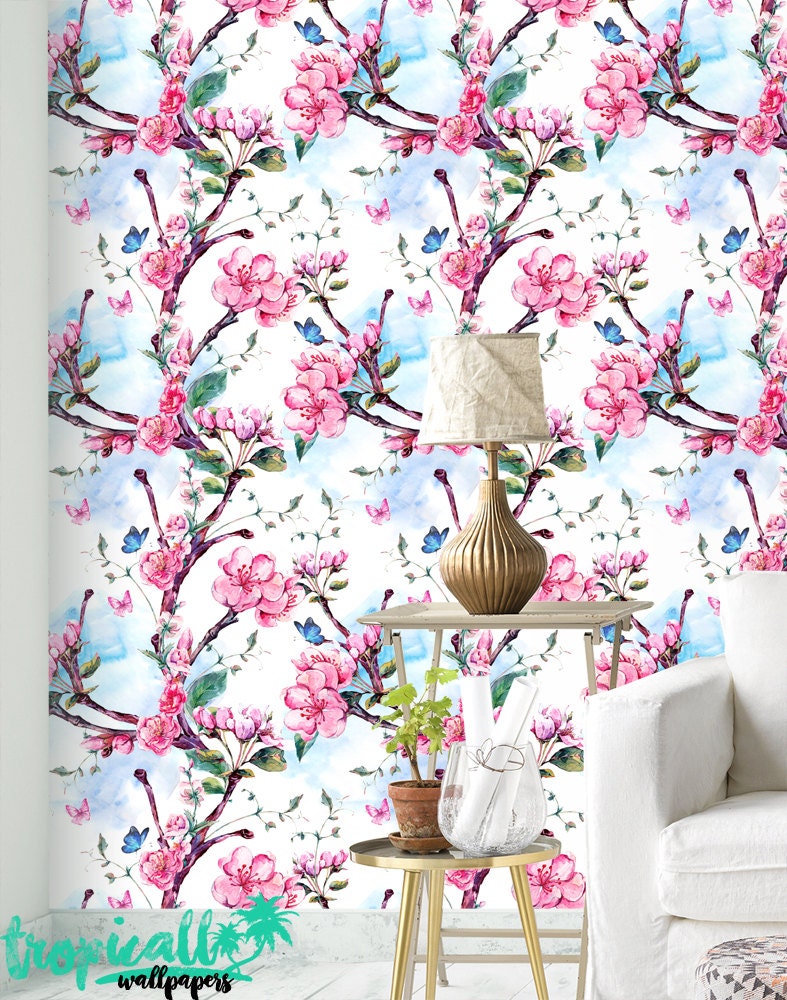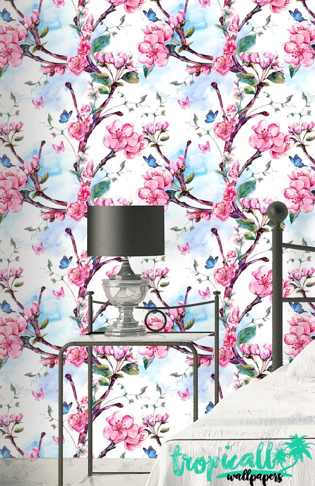 Cherry Blossom Wallpaper: Pink Floral Removable Wall Sticker
