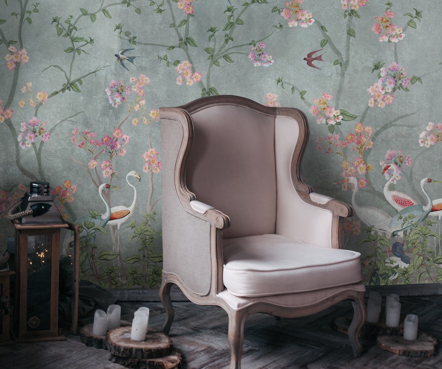 Chinoiserie Wallpaper Mural, Chinese Crane Bird Wallpaper