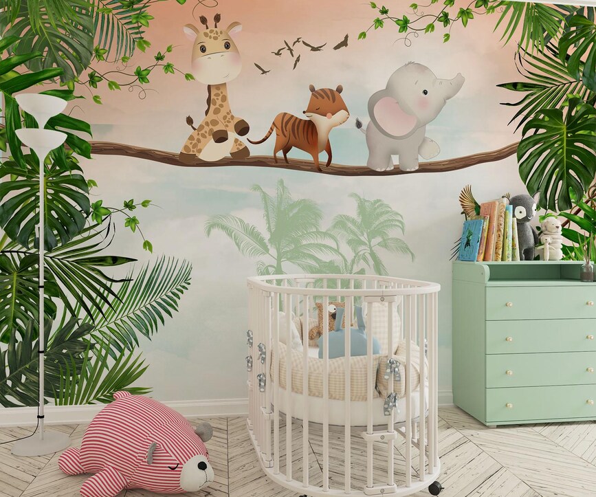 Be the first to review “Cute Safari Animals Safari Tropical wallpaper for kids rooms design”