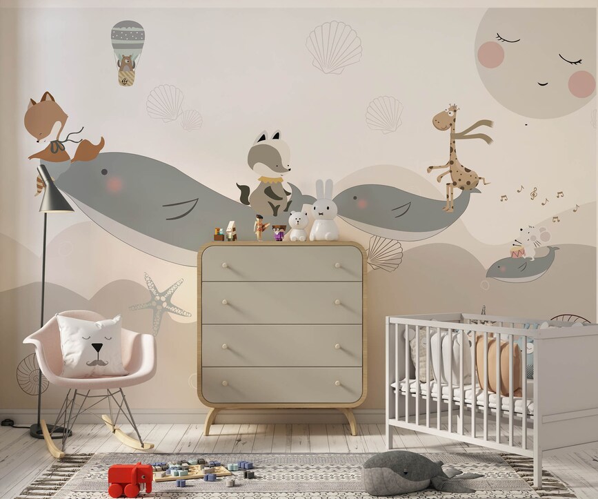 Cute whale Sweet animals Child room wallpaper