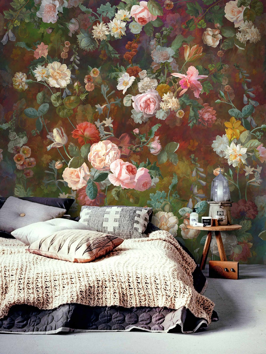 Dark Floral Peony Wallpaper Mural –