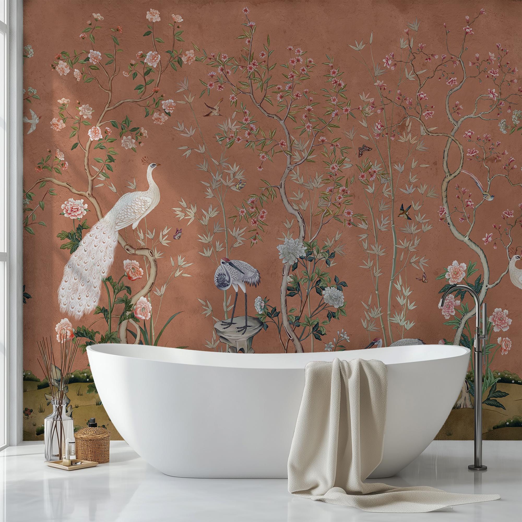 Be the first to review “Elegant Chinoiserie Wallpaper Mural: Peacocks, Birds, and Floral Asian-Inspired Design” Cancel reply