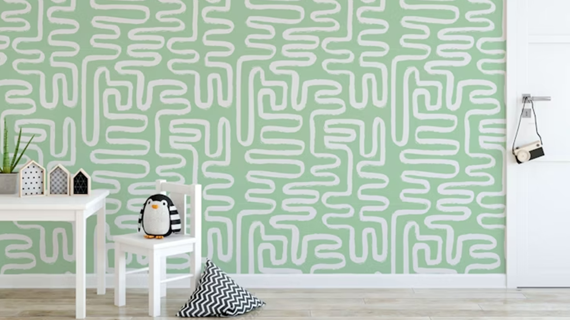 Element is a whimsical squiggle wallpaper that harmonizes beautifully with contemporary decor. Featuring a straightforward two-color palette that enhances its striking design, this versatile wallpaper is well-suited for a variety of spaces.