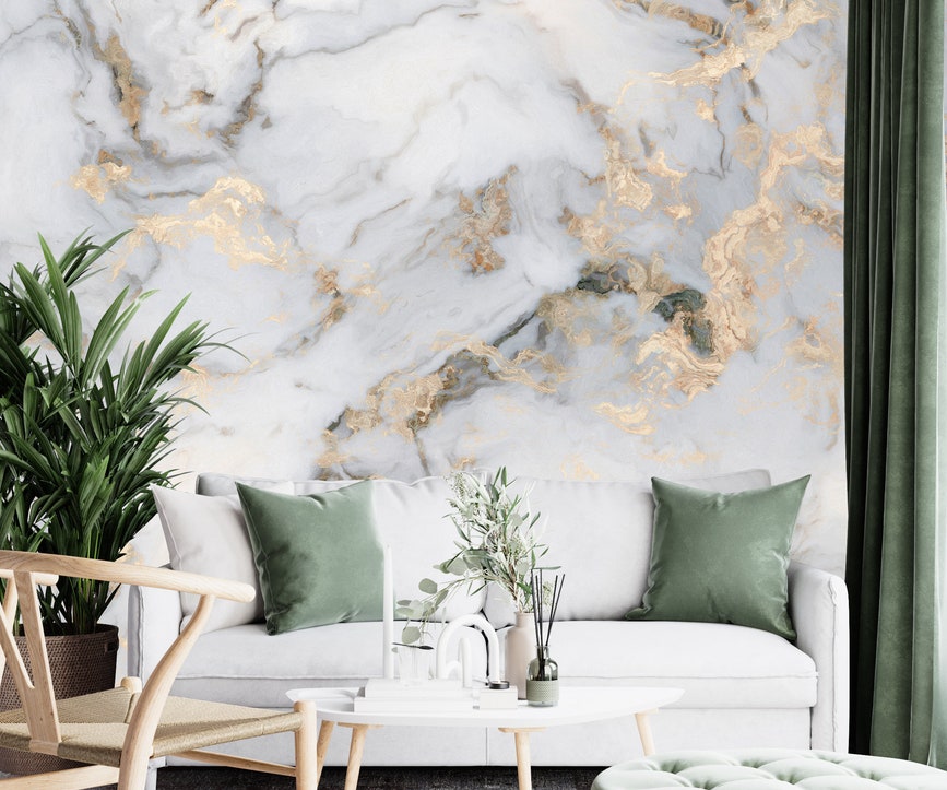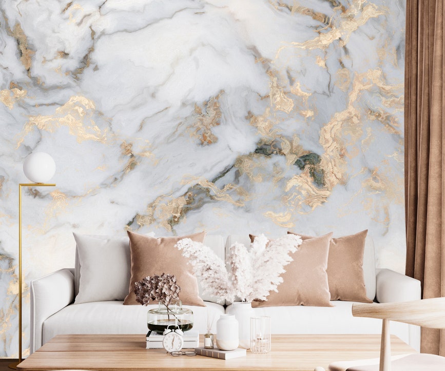 The subtle marble effect adds depth and dimension without overwhelming the space, making it ideal for living rooms, bedrooms, hallways, offices, and upscale commercial environments. Printed in ultra–high resolution on premium wallpaper material, it delivers crisp detailing, smooth color transitions, and a timeless luxurious finish.