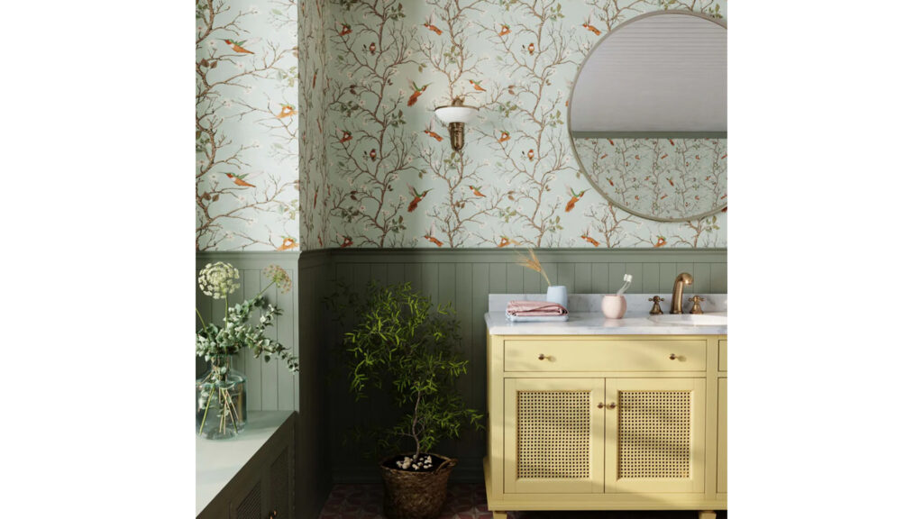 If you are seeking to create a statement wall or infuse your entire room with sophistication, our chinoiserie bird wallpaper is an exceptional choice. The design is offered in a variety of colors, ranging from soft pastels to deeper hues, allowing for seamless integration with diverse decor styles.